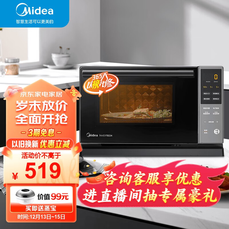 美的(Midea)微碳系列 下拉门微波炉 附烤箱功能 杀菌家用 800w变频 光波速热(PC20M5T)价格:519.00元!