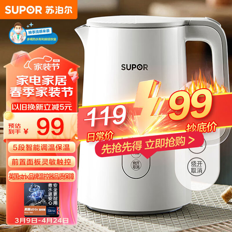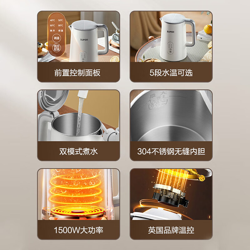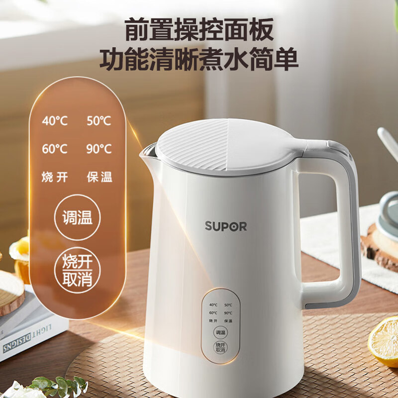 苏泊尔(SUPOR)1.5L侧显温度烧水壶 触控操作 5段调温保温恒温电热水壶电水壶 养生 SW-15J71A价格:98.00元!
