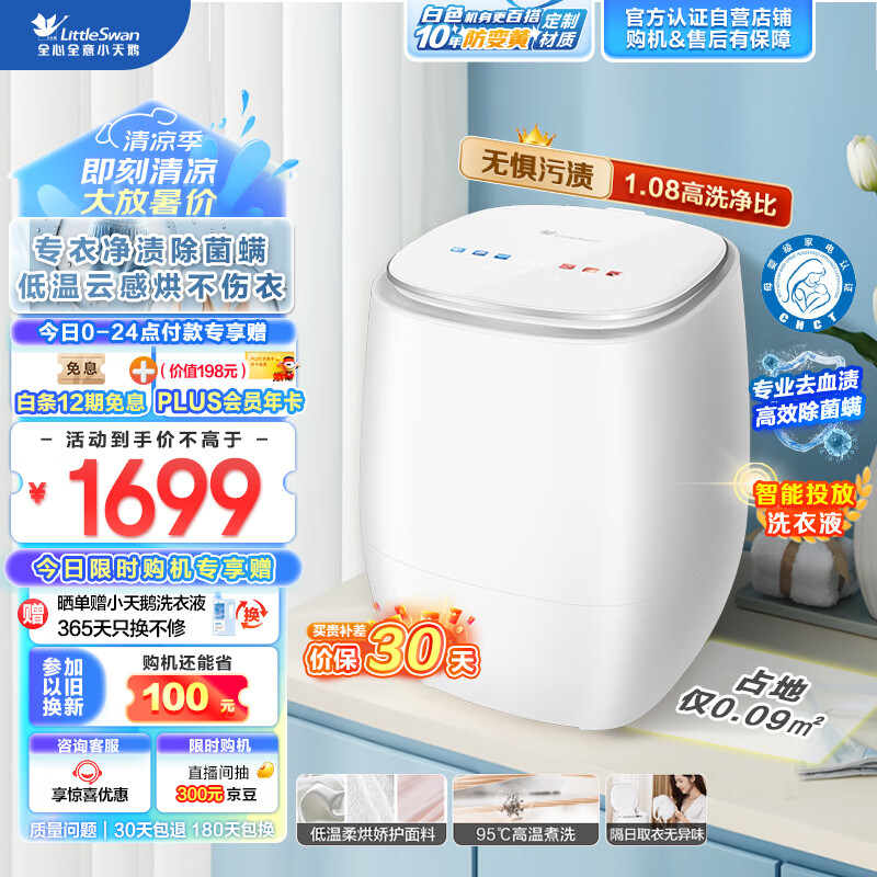 小天鹅(LittleSwan)内衣洗衣机全自动 带烘干洗烘一体 婴儿洗衣机小型迷你 0.5公斤 煮洗除菌 智投 白精灵 TND5VD0WE价格:1699.00元!