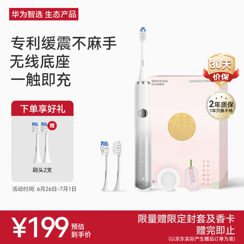 华为智选力博得电动牙刷 智能声波牙刷2 冰山青春款 送男友送女友牙刷礼物 冷岩灰(支持鸿蒙智联)价格:199.00元!