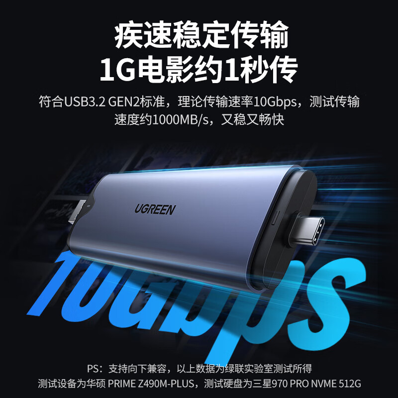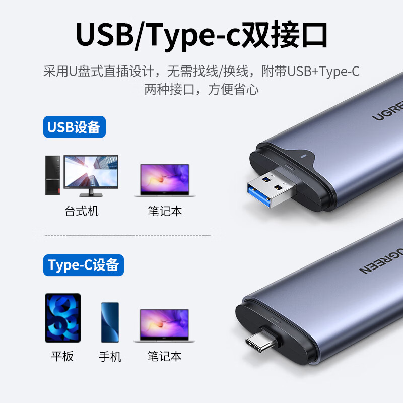 绿联(UGREEN) M.2 NVMe/SATA双协议固态硬盘盒 Type-C/USB3.2移动硬盘盒 适用笔记本苹果15外接SSD机械硬盘价格:159.00元!