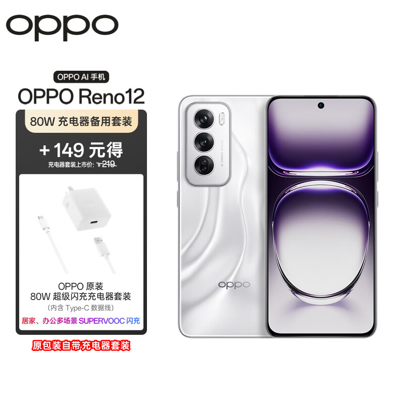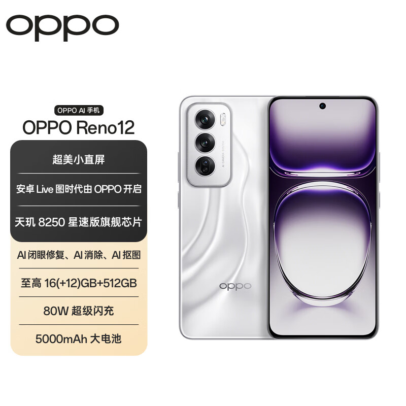 OPPO Reno12 16GB+512GB千禧银 超美小直屏 天玑8250星速版旗舰芯拍照手机 【80W原装充电器备用套装】价格:3348.00元!
