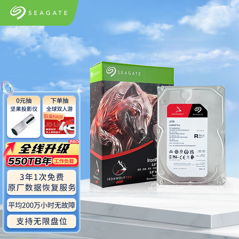 希捷(SEAGATE)NAS硬盘10TB 企业级 256MB 7200转 CMR垂直 SATA 希捷酷狼PRO 机械硬盘 550年负载 数据恢复服务价格:2599.00元!