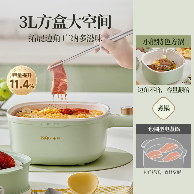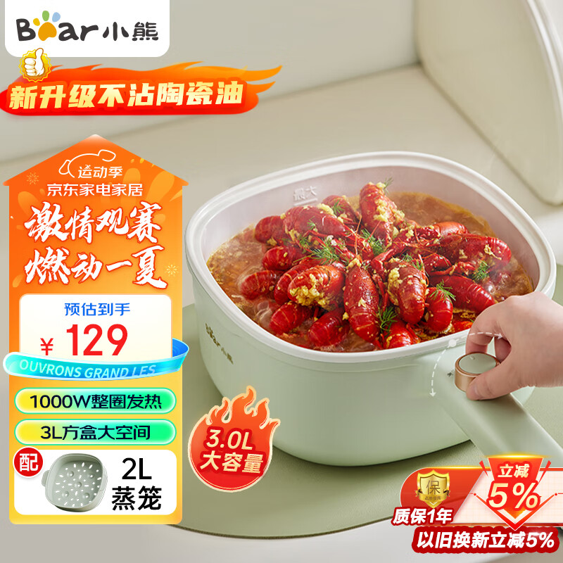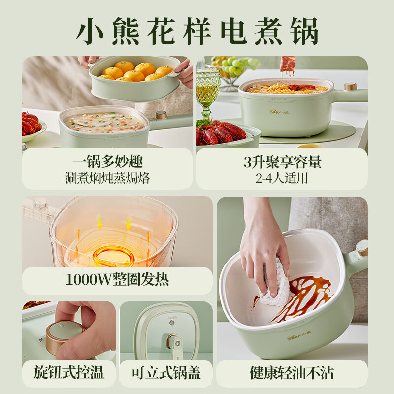 小熊(Bear)电煮锅 泡面火锅宿舍小电锅 多功能多用途电热锅 3L蒸煮一体蒸屉蒸笼电蒸锅 DRG-E30N2价格:129.00元!