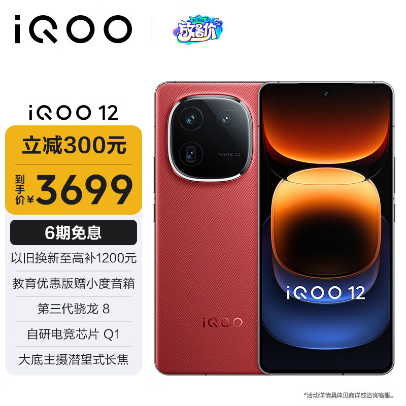 vivo iQOO 12 12GB+256GB燃途版 第三代骁龙 8 自研电竞芯片Q1 大底主摄潜望式长焦 5G电竞手机价格:3999.00元!