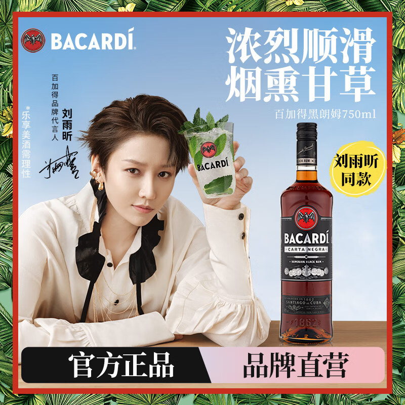 百加得(Bacardi) 洋酒 黑朗姆酒 莫吉托 基酒调酒 750ml价格:80.00元!