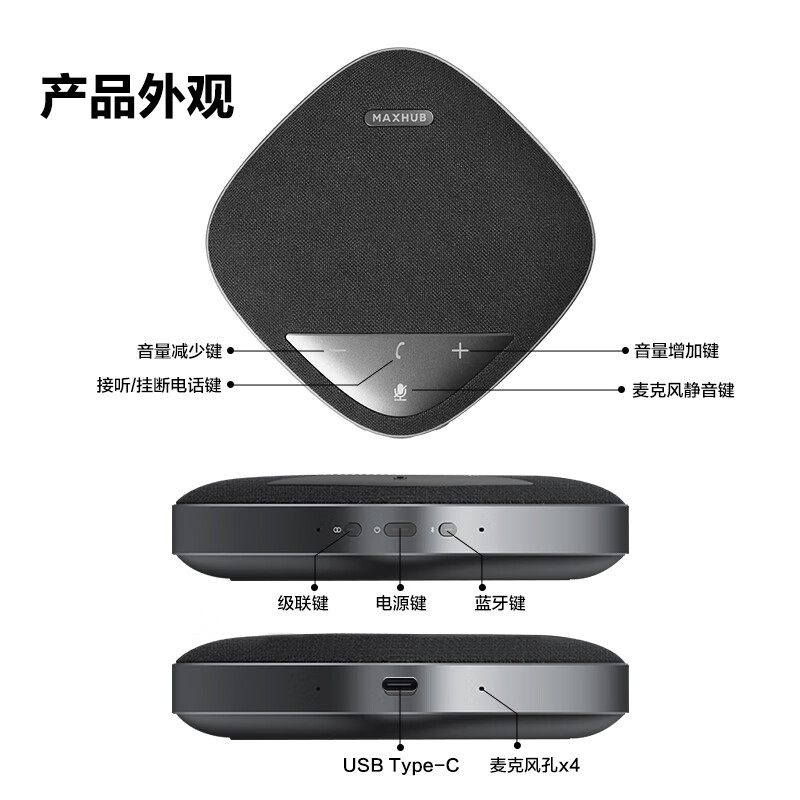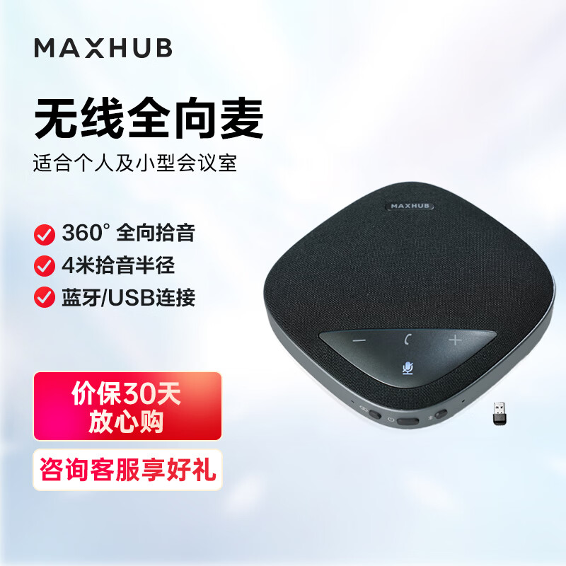 MAXHUB视频会议全向麦克风/360°全向4米拾音器 3种连接方式 桌面扬声器音箱/10-20㎡会议室解决方案 BM10A价格:429.00元!