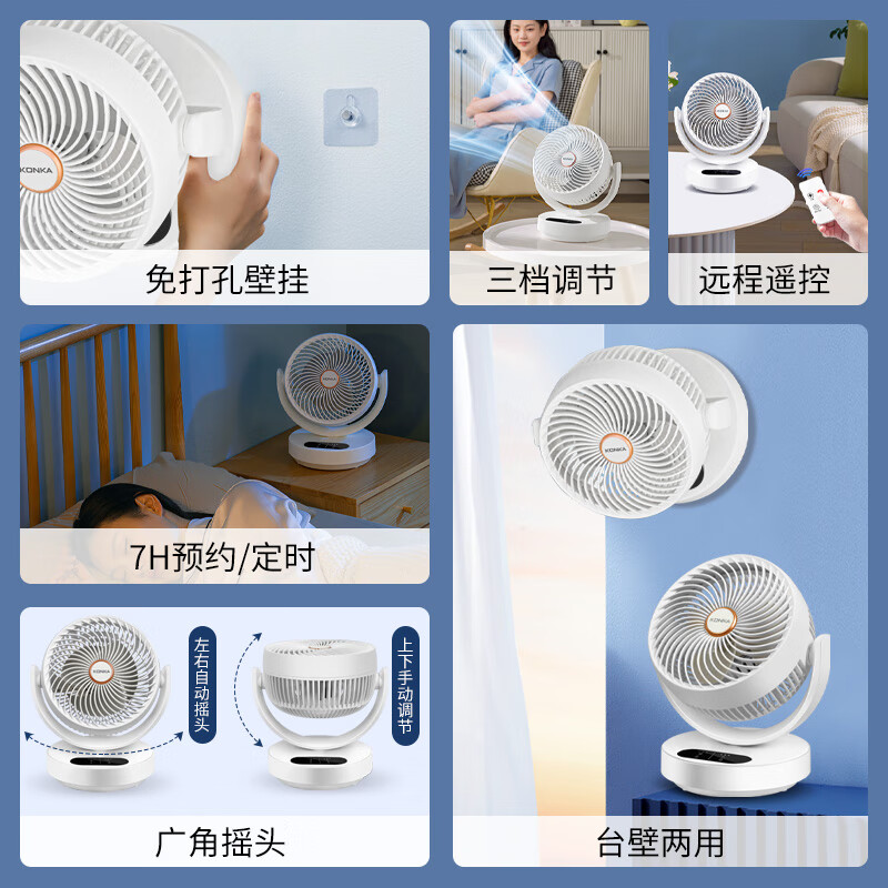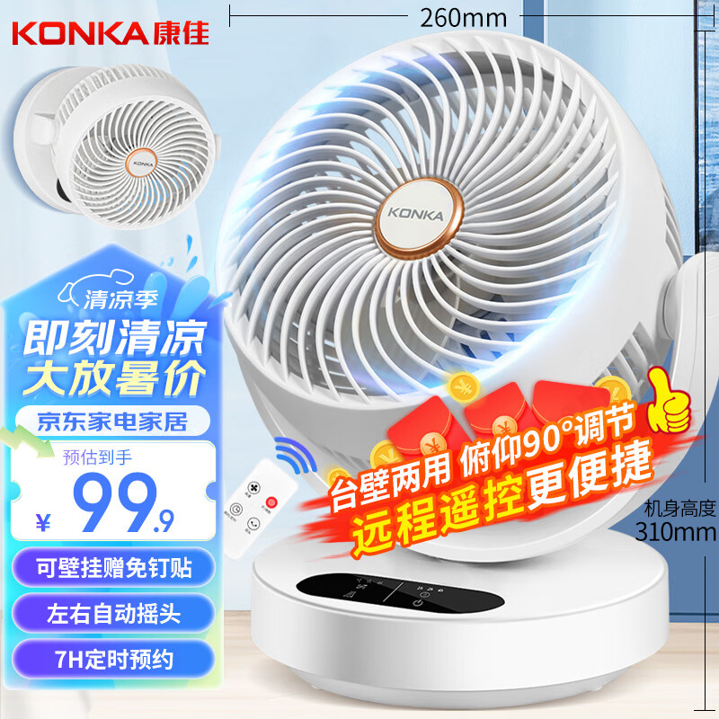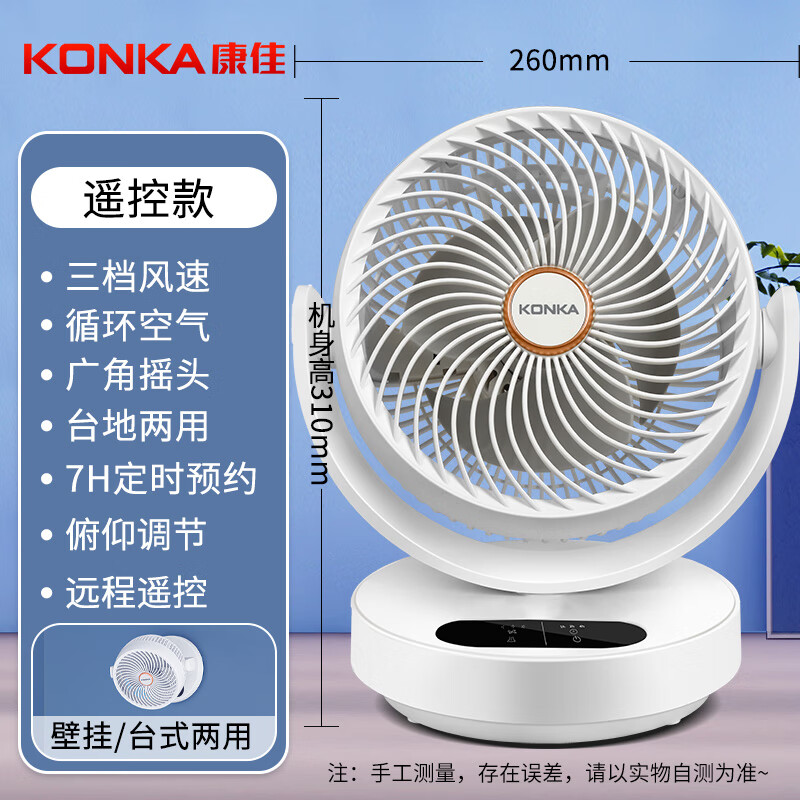 康佳(KONKA)空气循环扇家用风扇遥控台式桌面电风扇办公室轻音节能换气扇壁挂电扇可摇头小风扇KXHS-1511E-P价格:139.90元!