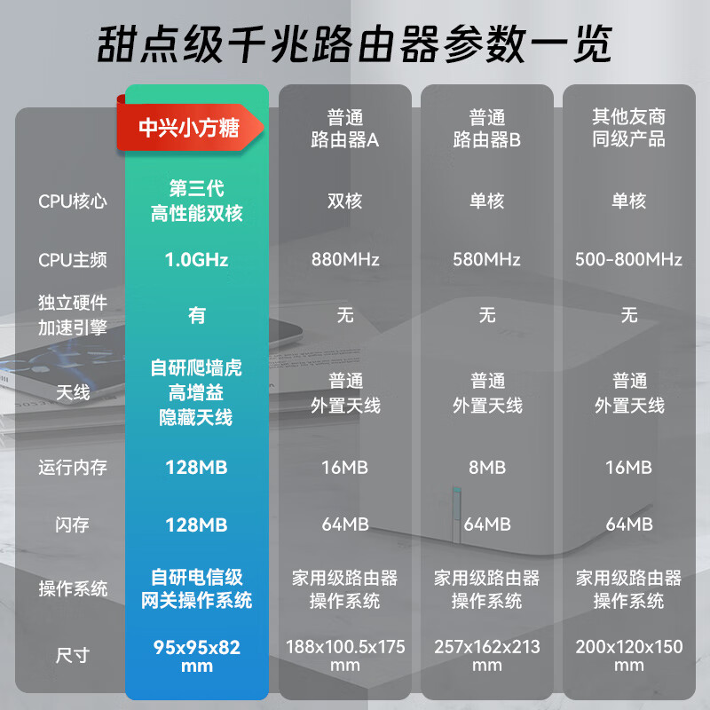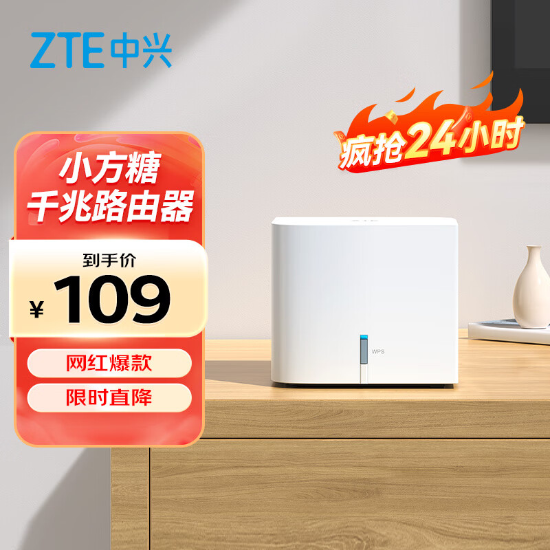 中兴(ZTE) 小方糖 AC1200 5G双频千兆智能无线路由器 一键mesh Z506智能wifi 稳定穿墙高速家用价格:109.00元!