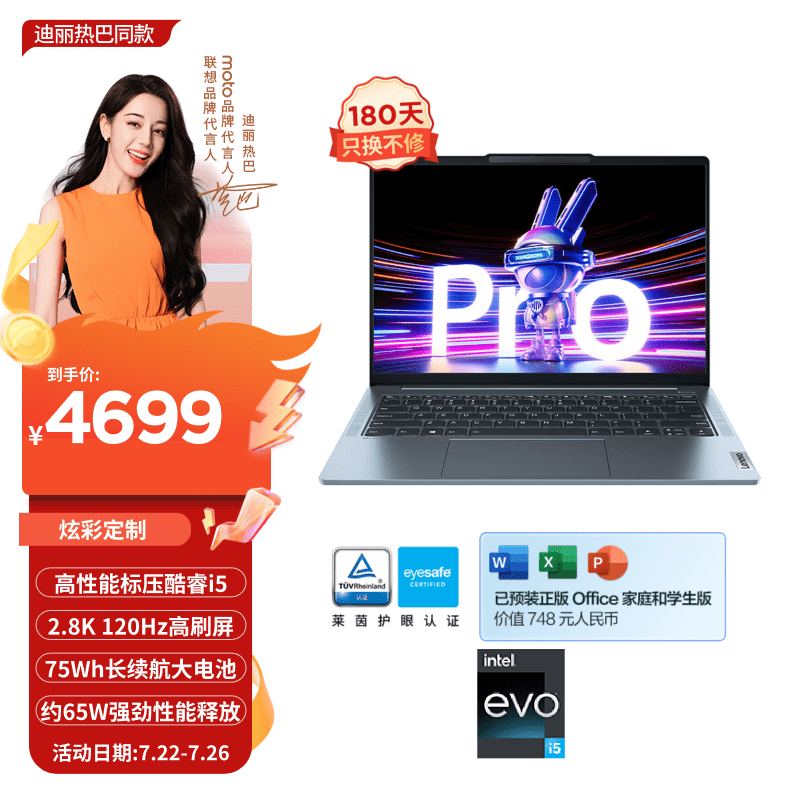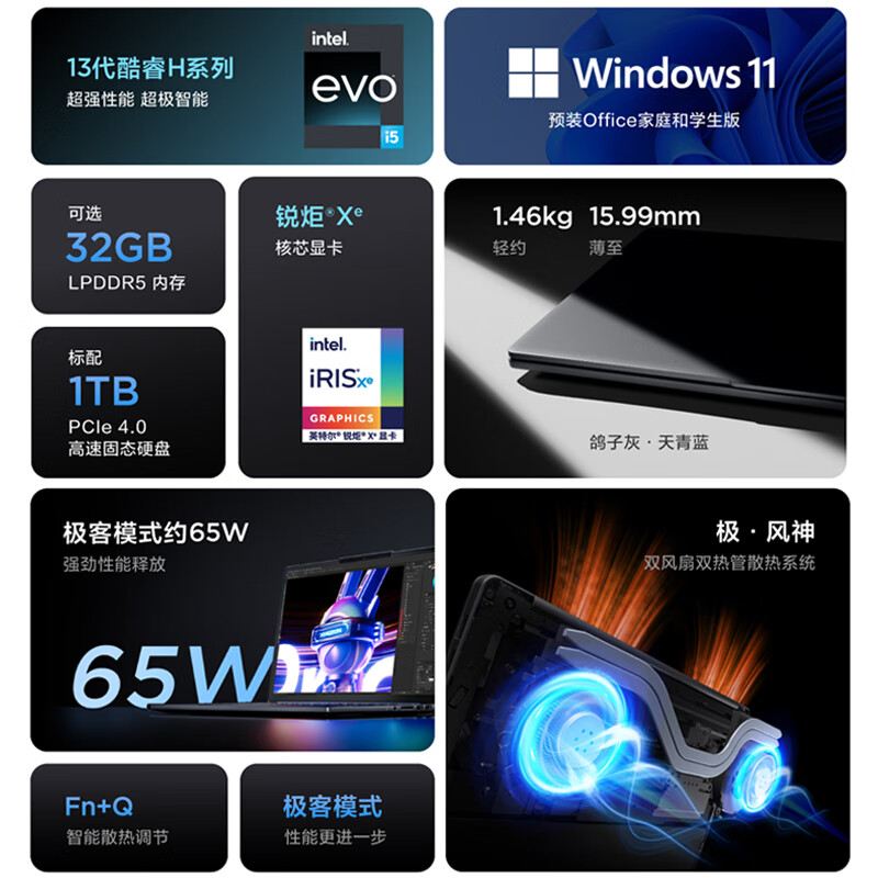 联想笔记本电脑小新Pro14超能本 高性能酷睿标压i5 14英寸轻薄本 16G 1T 2.8K高刷护眼屏 蓝 游戏价格:4699.00元!