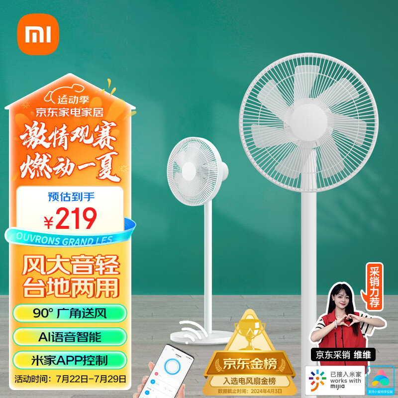 米家 小米电风扇 落地扇家用 7羽叶轻音大广角大风量远风距 台地两用 远程智能控制 AI语音控制价格:219.00元!