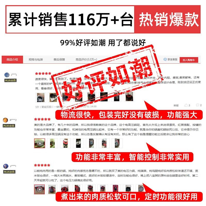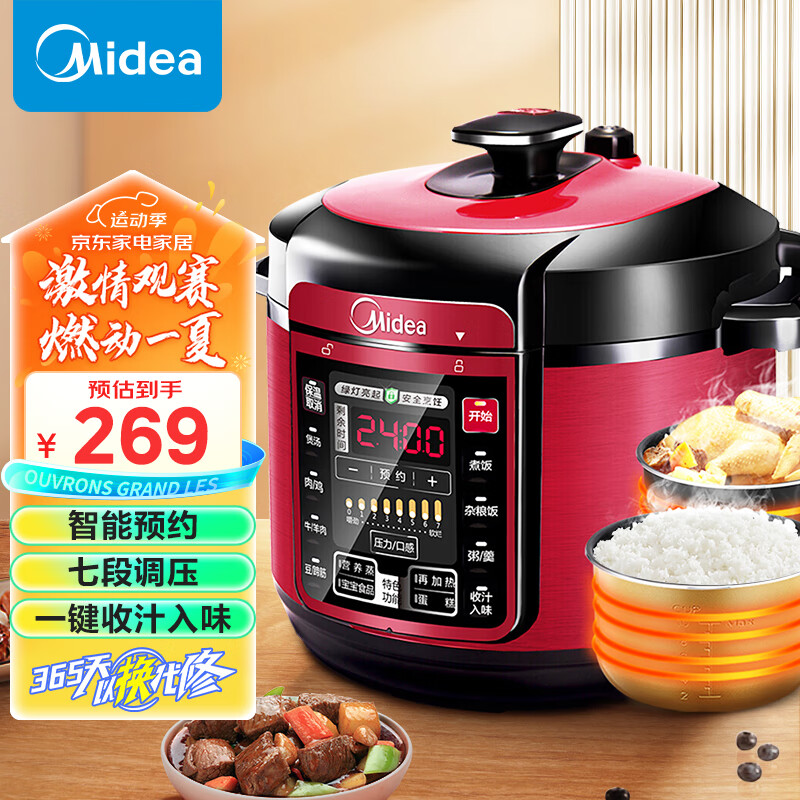 美的(Midea)智能电锅5L家用多功能 易清洁双胆 浓香收汁 七段调压 一键排气 高压锅WQC50A5(3-6人食用)价格:299.00元!
