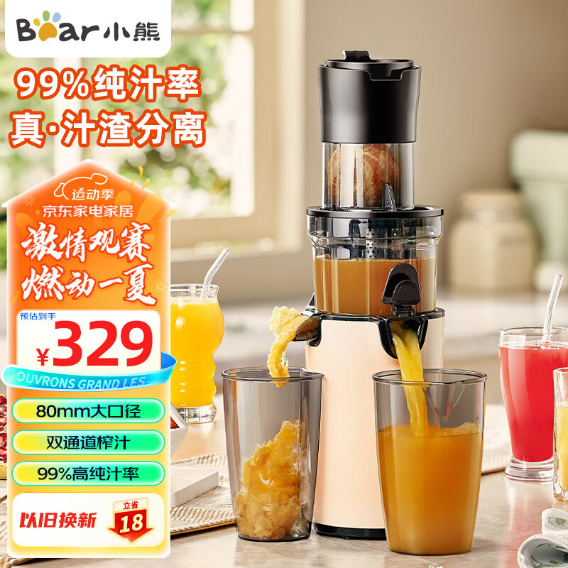 小熊(Bear)原汁机 多功能家用电动榨汁机渣汁分离 全自动多功能冷压榨果蔬机 果汁机 YZJ-C02S5价格:329.00元!
