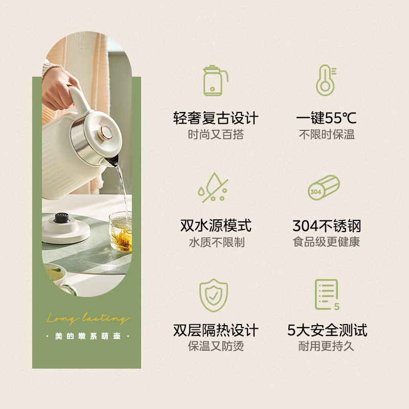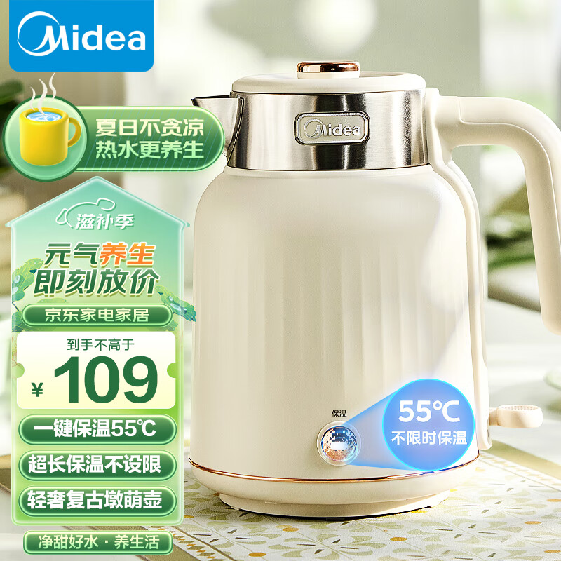 美的(Midea)电水壶烧水壶 热水壶电热水壶 一键保温恒温开水壶304不锈钢 1.5L大容量双层防烫无缝内胆SH51-Q价格:109.00元!