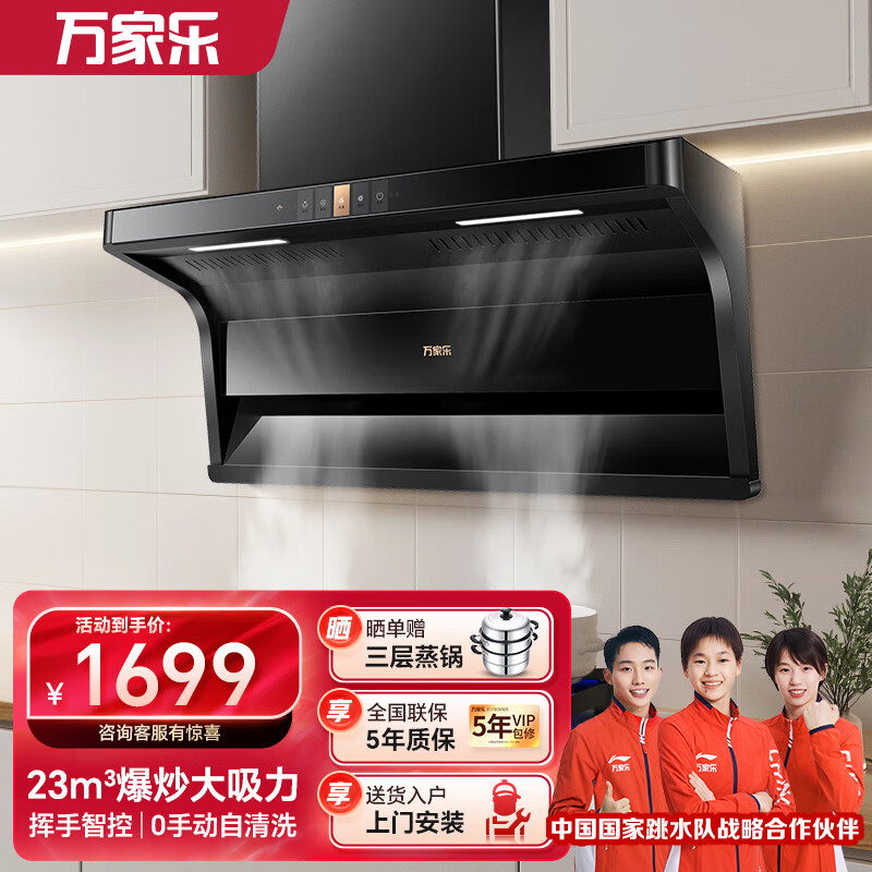 万家乐 TAK6顶侧双吸家用7字型抽油烟机 23风量爆炒大吸力挥手感应 一级能效 0手动自动清洗 CXW-300-TAK6价格:1999.00元!