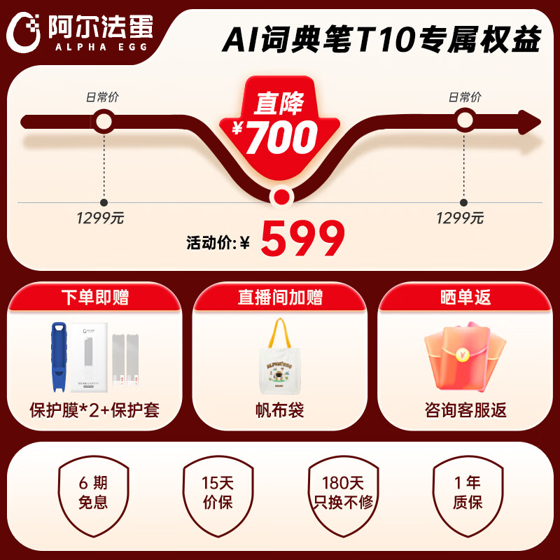 阿尔法蛋AI词典笔T10 32G版 白色 英语点读笔 翻译笔 电子词典扫描笔单词笔学习机价格:599.00元!