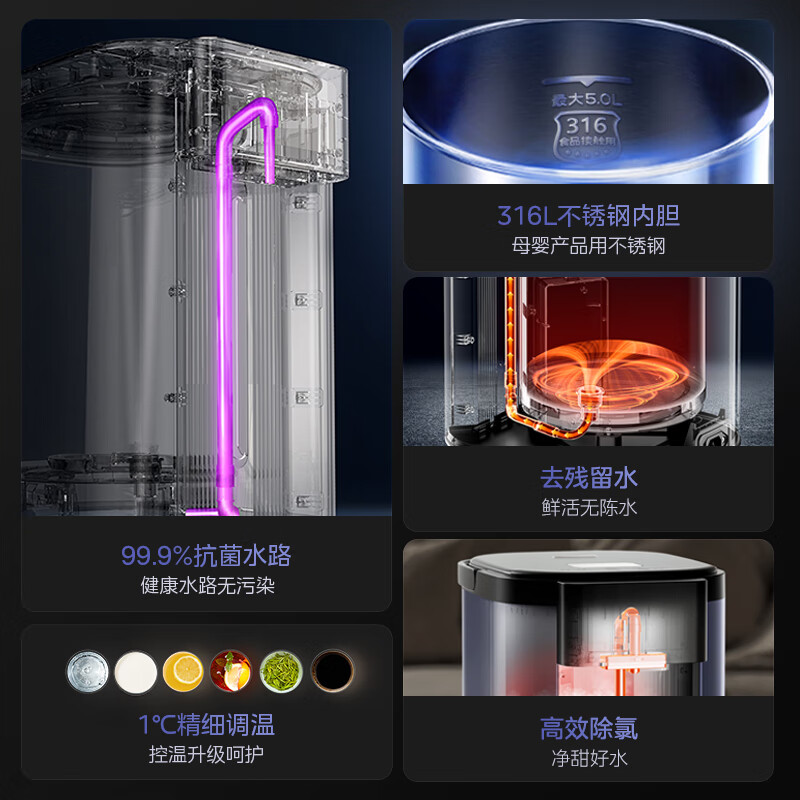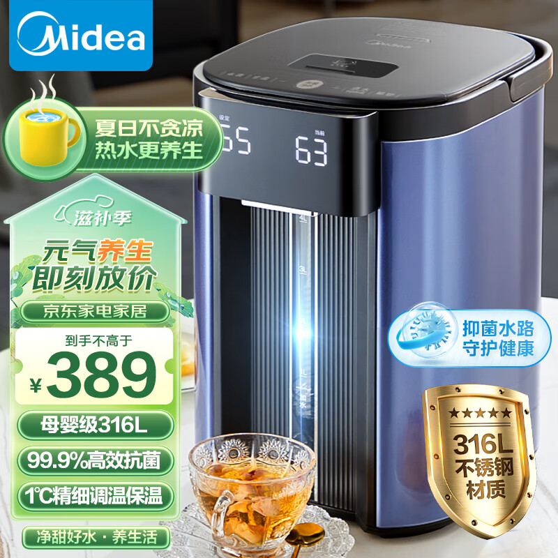 美的(Midea)电热水瓶电热水壶316L不锈钢热水瓶5L家用办公多段智能控温恒温水壶净甜开水壶烧水壶SP1A价格:389.00元!