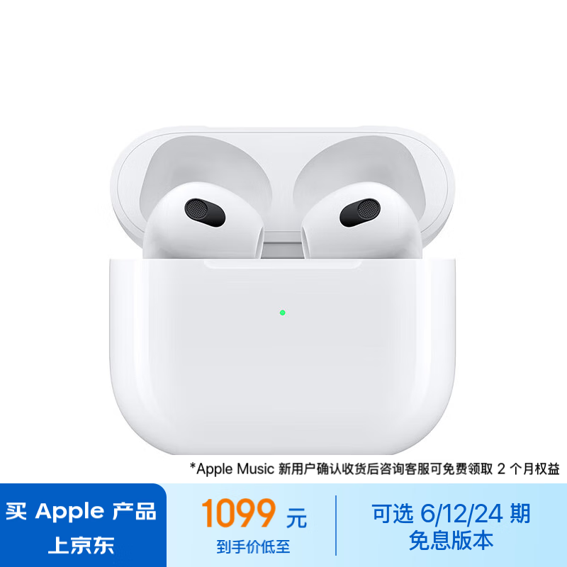 Apple/苹果 AirPods (第三代) 配闪电充电盒苹果耳机 蓝牙耳机 无线耳机 适用iPhone/iPad/Watch/Mac价格:1099.00元!