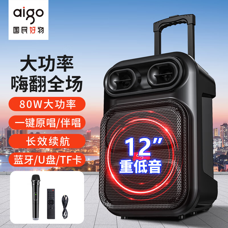 爱国者S56 12英寸广场舞音响无线蓝牙拉杆音箱大功率户外音响K歌便携低音炮摆摊扩音器喇叭 单麦克风价格:329.00元!