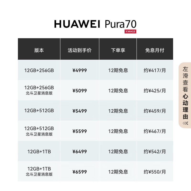 华为Pura 70价格参考: