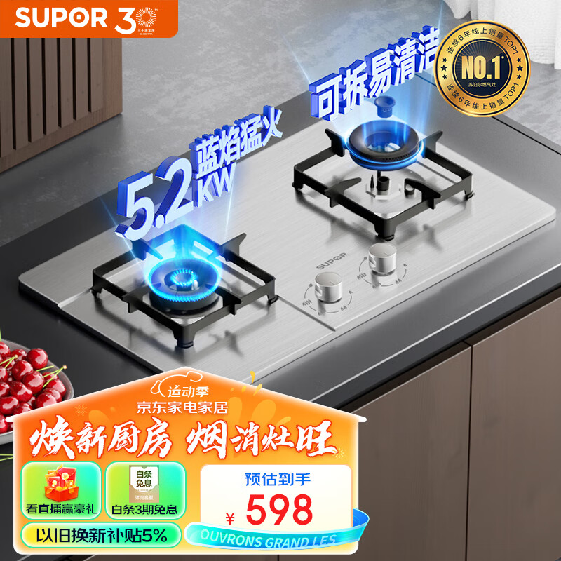 苏泊尔(SUPOR)燃气灶双灶家用 液化气双灶具5.2kW大火力猛火 易洁耐用不锈钢面板 台嵌两用灶具 DS35液价格:598.00元!
