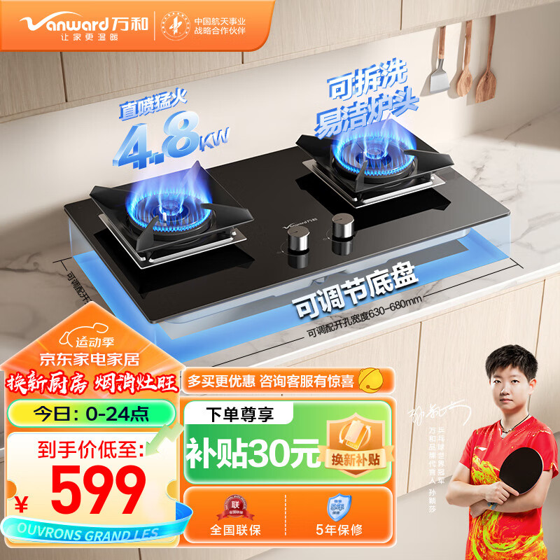 万和(Vanward)燃气灶液化气 双灶具 家用4.8kW猛火灶台嵌两用煤气炉煤气灶 钢化玻璃 可调节底盘JZY-C5L90S价格:599.00元!