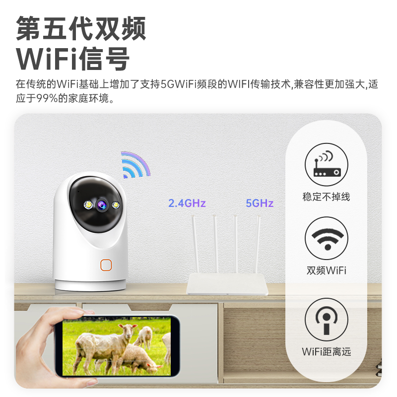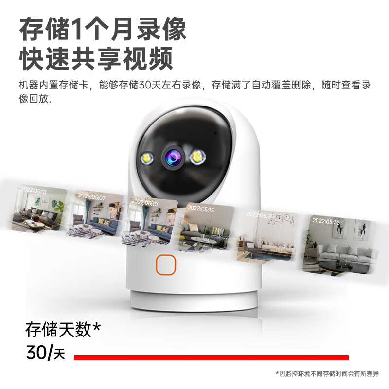 乔安监控摄像头500万像素智能摄像机wifi手机远程对讲360度无死角带夜视全景家用3K超高清室内监控器价格:149.00元!