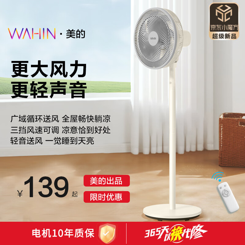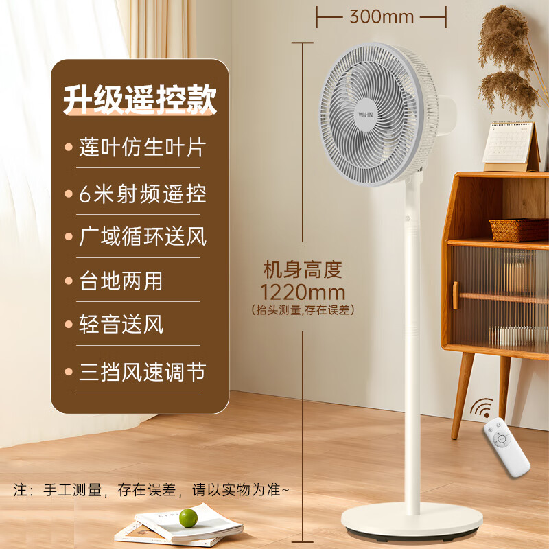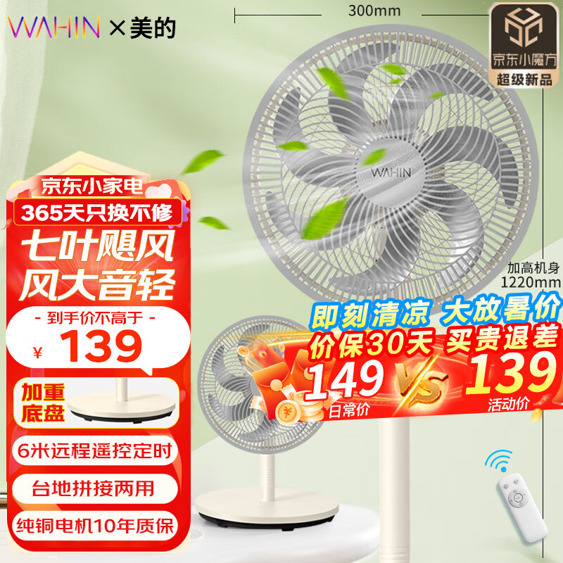 华凌 美的华凌 电风扇家用7叶落地扇 摇头电风扇循环风扇通风大风量电扇(台地两用遥控款)WH-FSA3003价格:139.00元!