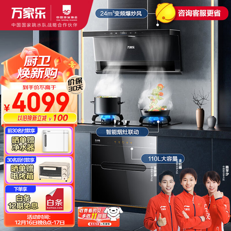 万家乐 抽油烟机烟灶消厨房三件套24m3/min顶侧三吸变频静音烟灶联动厨房三件套TAK8+KV063B+DQ052天然气价格:4399.00元!