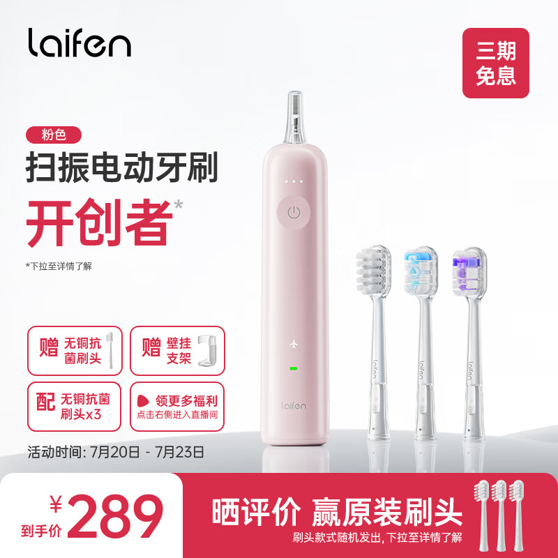 laifen徕芬新一代扫振电动牙刷成人情侣礼物 深度清洁护龈 莱芬赠男士女士生日情人节礼物 粉色(赠原装刷头*1+支架*1)价格:600.00元!