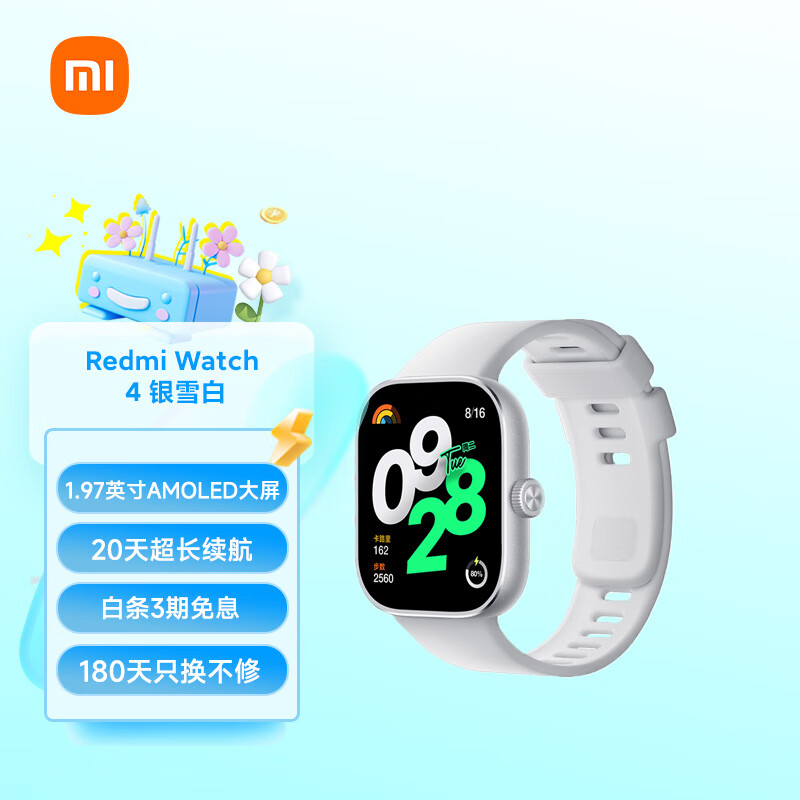 小米(MI)Redmi Watch4 红米智能手表 银雪白 血氧检测 蓝牙通话 旋转表冠 运动手表 小米手表 男表 女表价格:499.00元!