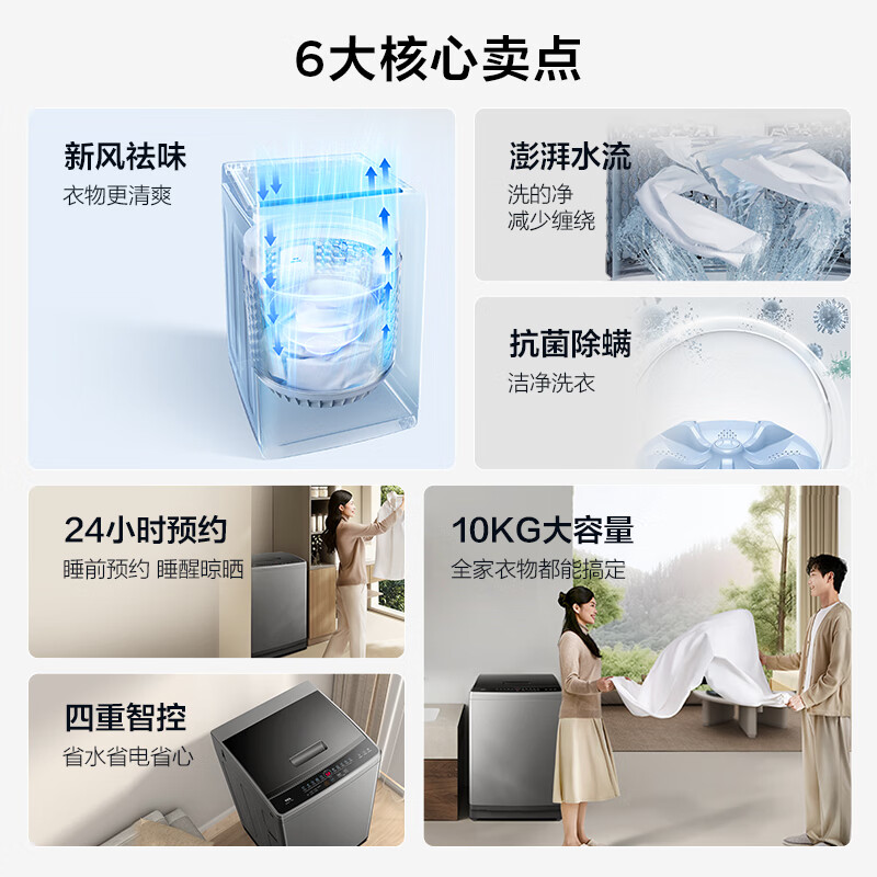TCL 10公斤新风抗菌全自动家用洗衣机除螨洗宿舍租房神器以旧换新升级版新风祛味B100V2价格:849.00元!