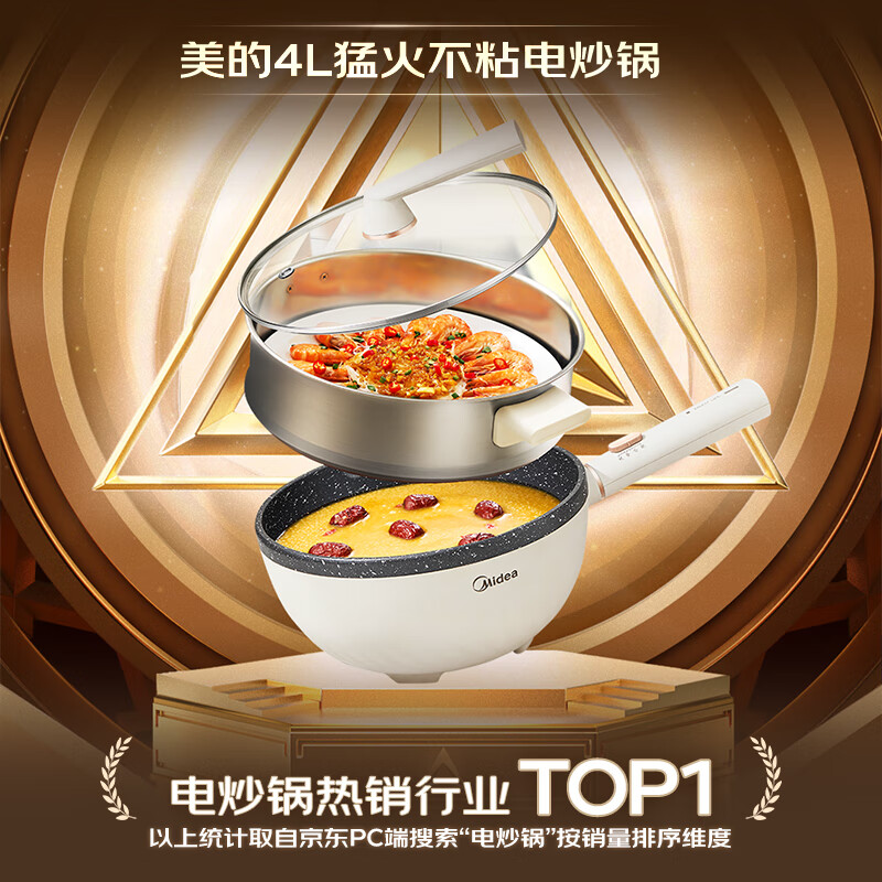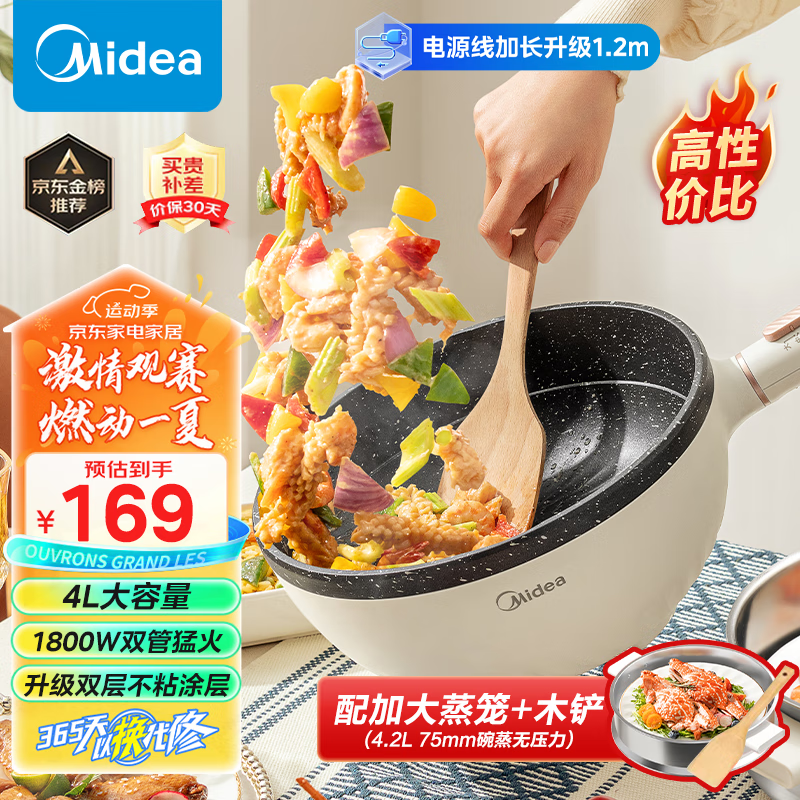 美的(Midea)电炒锅 电火锅 电蒸锅 电煮锅家用多功能大功率一体锅 炒菜锅4L电热锅 HGE2811B 配蒸笼价格:169.00元!