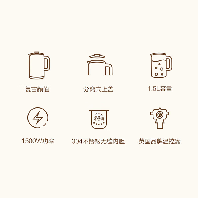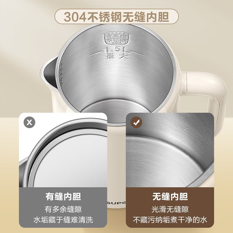 苏泊尔(SUPOR)烧水壶 电热水壶 双层防烫 开水壶 家用 全钢无缝内胆 上盖可拆 SW-15T109A(米白)价格:79.00元!