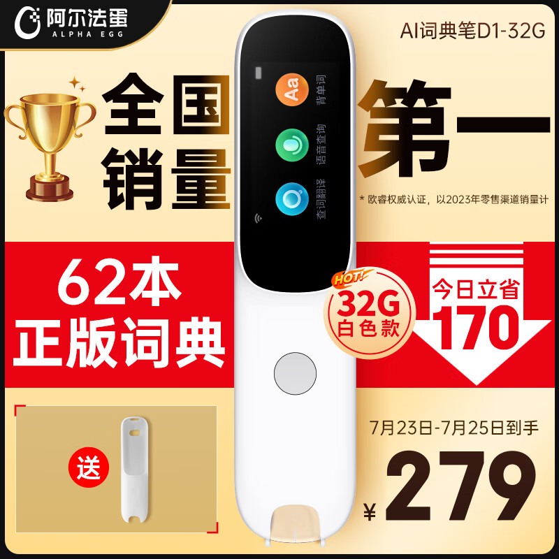 阿尔法蛋AI词典笔D1 32G 冰雪白 英语点读笔学习笔神器 翻译笔扫描笔 中小学生电子词典单词笔学习机价格:279.00元!