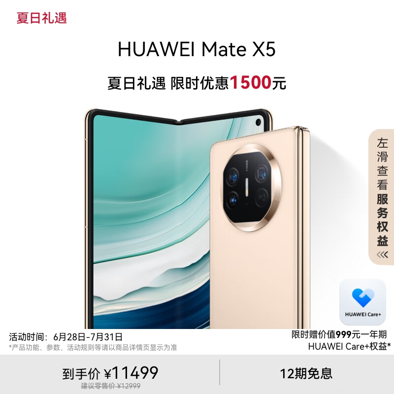 华为(HUAWEI) Mate X5 折叠屏手机 12GB+256GB 羽砂金价格:11499.00元!