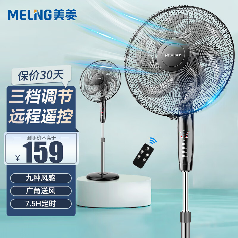 美菱(MeiLing)电风扇/落地扇 六叶大风量立式节能省电风扇家用轻音摇头扇遥控定时FS-40RC(6)价格:159.00元!