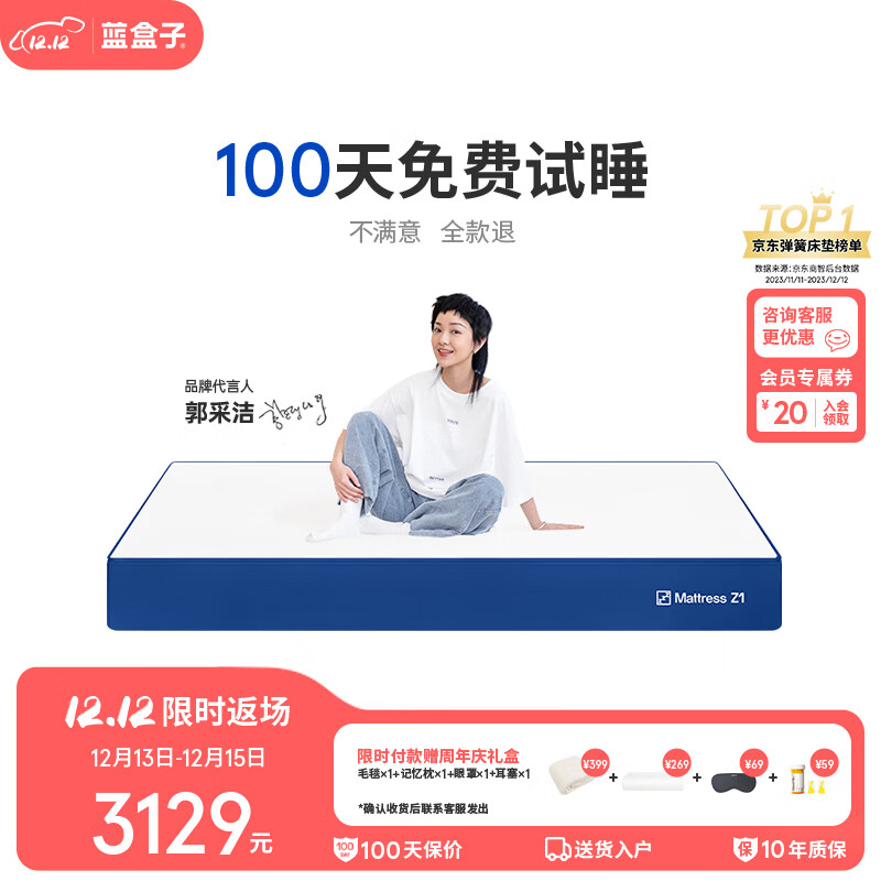 蓝盒子Z1博主推荐记忆棉弹簧床垫双人家用席梦思五星酒店1.8米*2米价格:4389.00元!