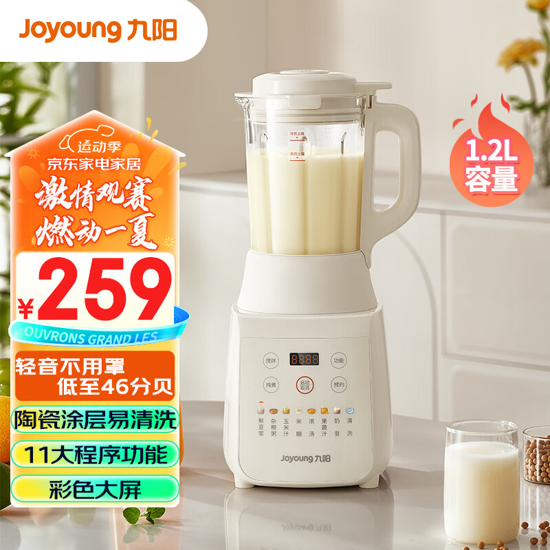 九阳破壁机家用豆浆机 柔音降噪 榨汁机料理机 纤薄精巧小容量 破壁机L12-P109价格:259.00元!