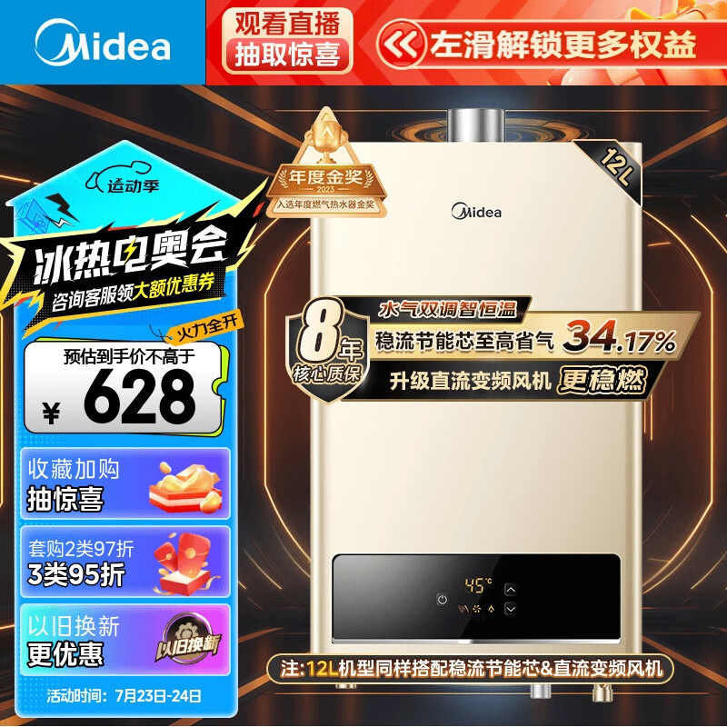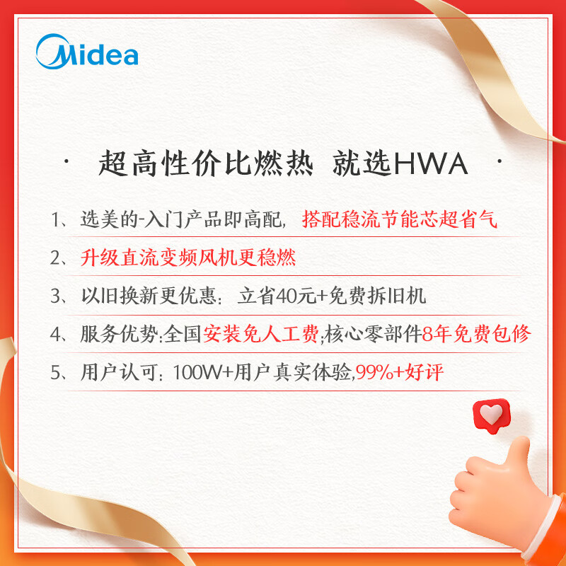 美的(Midea)12升燃气热水器 天然气 智能恒温 节能省气 水气双调 低水压启动 大屏显示 以旧换新JSQ22-HWA价格:628.00元!