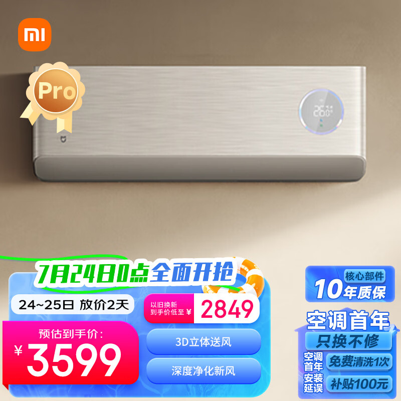 小米1.5匹 新风空调Pro 超一级能效 变频冷暖 60m3/h大新风量 空调挂机 KFR-35GW/F5A1价格:3599.00元!