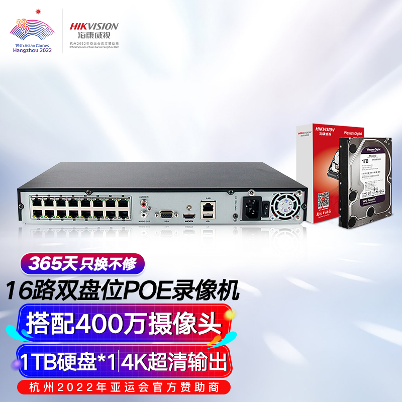 海康威视网络硬盘录像机监控16路POE网线供电满配16个摄像头带1T硬盘DS-7816N-Q2/16P价格:2280.00元!