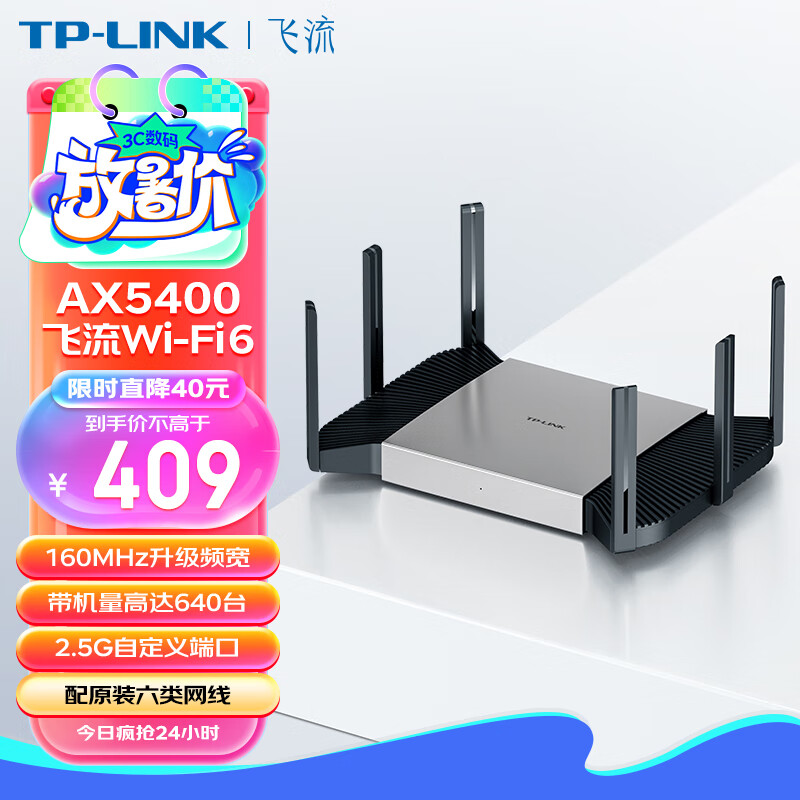 TP-link飞流5480 WiFi6游戏路由 AX5400双频千兆无线路由器 Mesh组网易展Turbo版 2.5G自定义端口 XDR5480价格:449.00元!