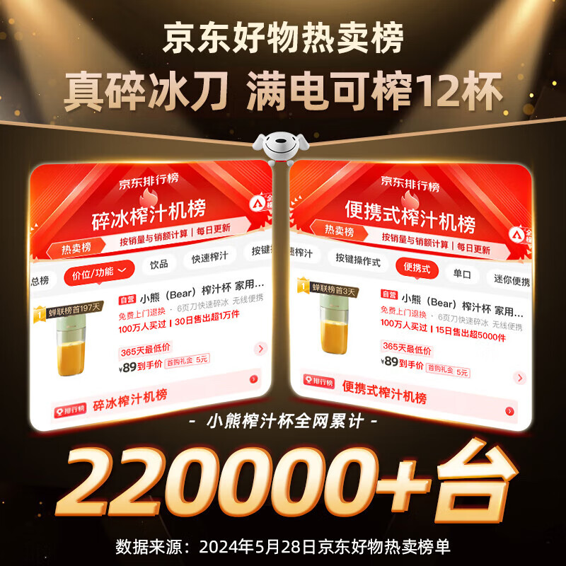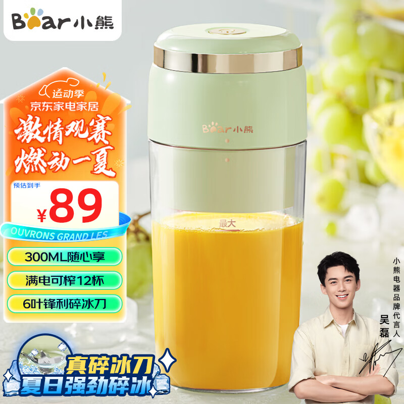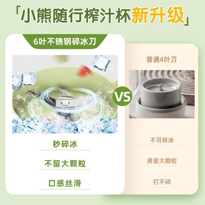 小熊(Bear)榨汁杯 家用便携式榨汁机 水果果蔬果汁机 秒碎冰打汁机 充电迷你小型果汁杯 LLJ-E03F1价格:89.00元!