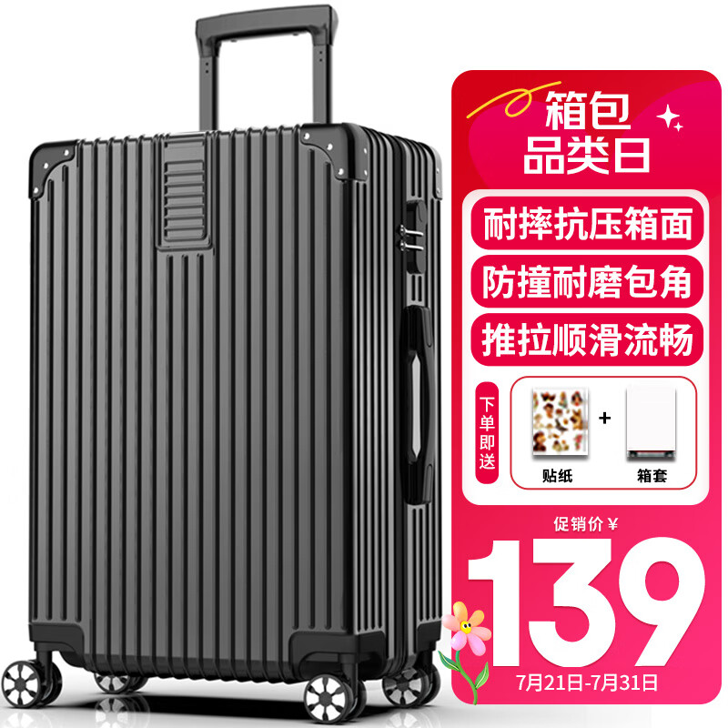 SOO行李箱男万向轮拉杆箱耐磨抗摔26英寸A330旅行箱密码箱女商务黑色价格:139.00元!
