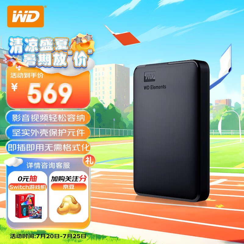 西部数据(WD)2TB 移动硬盘 USB3.0 元素系列 2.5英寸 机械硬盘 手机笔记本电脑外接 外置扩容备份价格:569.00元!