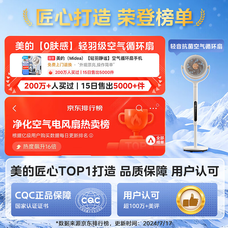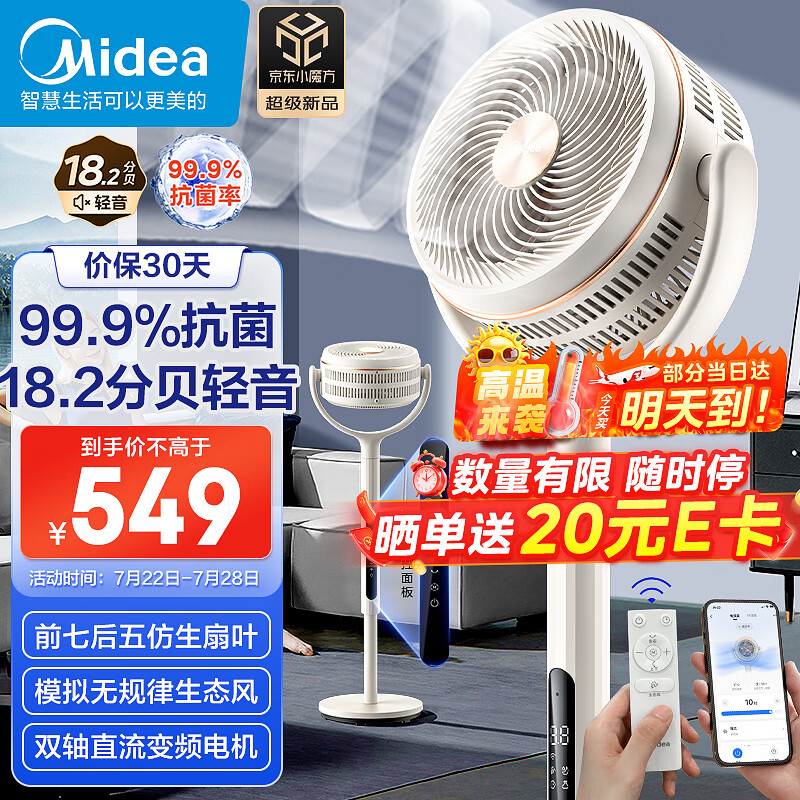 美的(Midea)【轻羽静谧】空气循环扇手机遥控四季净化扇家用大风力落地扇电风扇台式小风扇空调伴侣GDH24HG价格:649.00元!