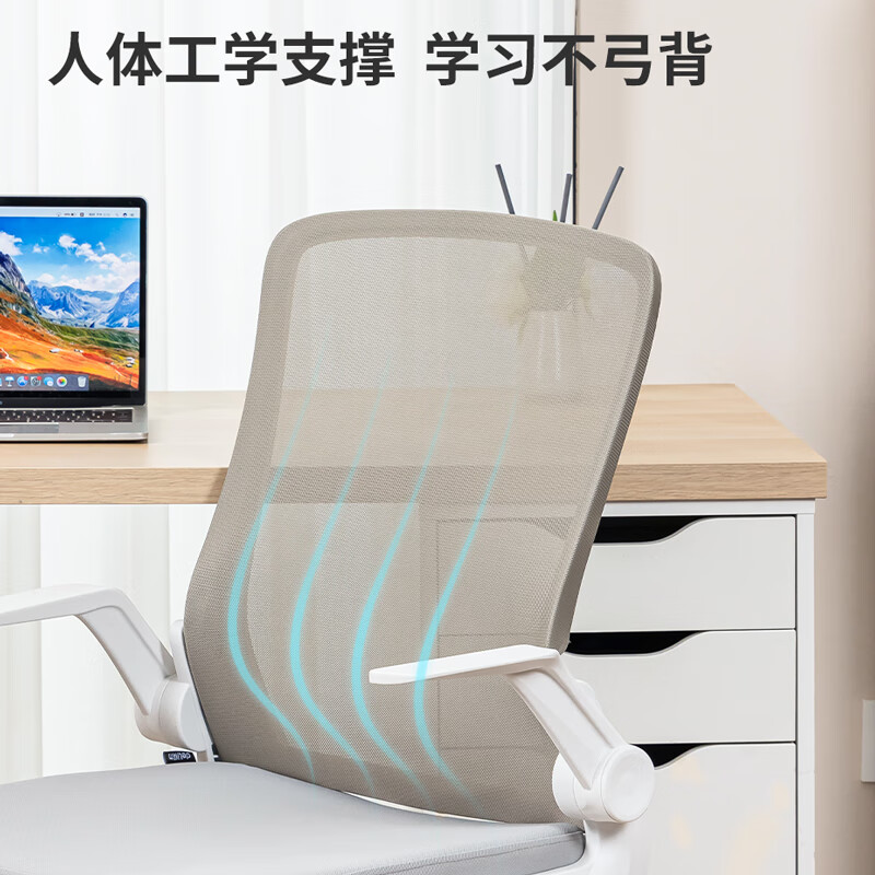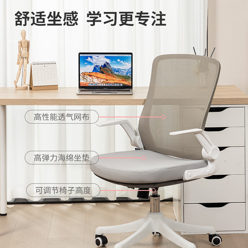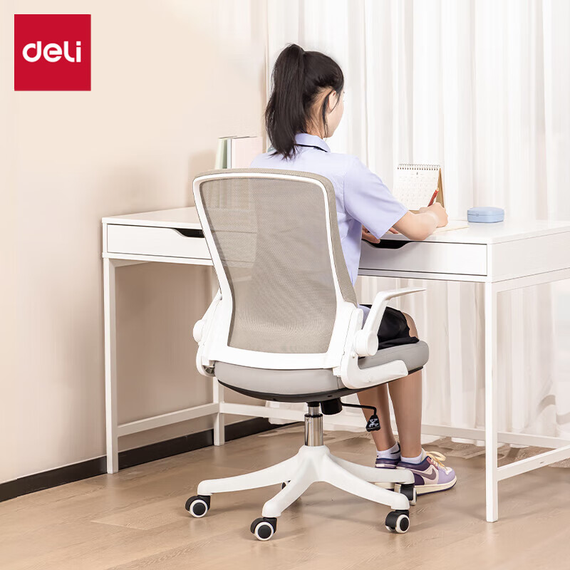 得力(deli)91106椅背扶手可翻折电脑椅 居家办公椅 学习座椅 家用舒适 灰色价格:379.00元!