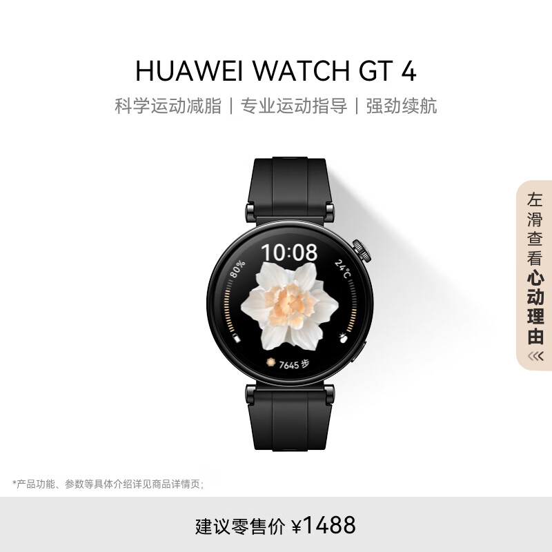华为WATCH GT4华为手表智能手表呼吸健康研究心律失常提示华为手表幻夜黑 男女表41mm价格:1088.00元!