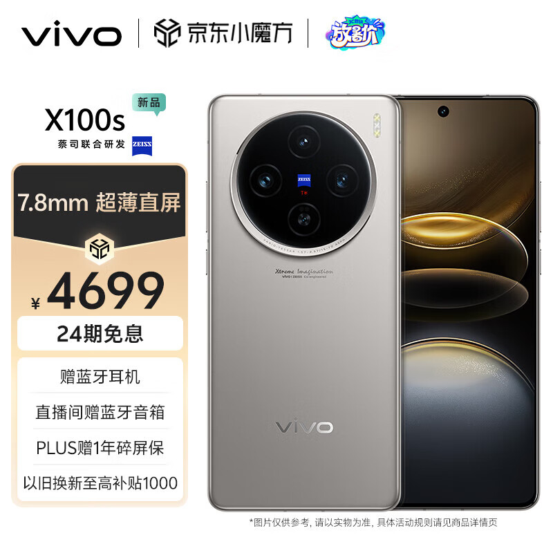 vivo X100s 16GB+512GB 钛色 蓝晶×天玑9300+ 蔡司超级长焦 7.8mm超薄直屏 5G 拍照 手机价格:4699.00元!